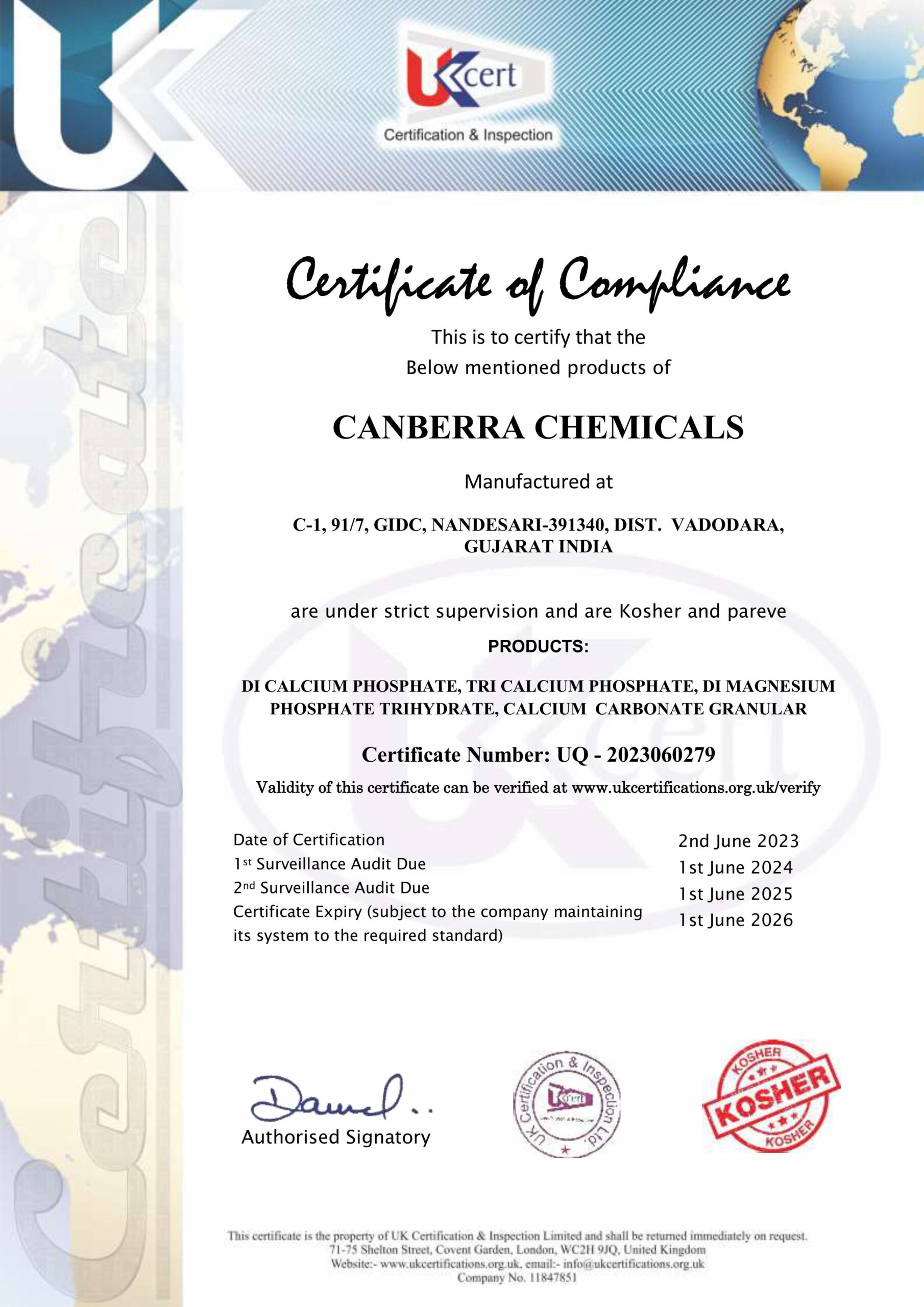 Our Certifications FSSC 22000 GMP Certificate GLP Certificate ISO 9001:2015 HALAL KOSHER ISO 14001:2015